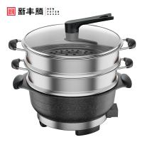 新丰腾电热锅多功能电火锅麦饭石电炒锅蒸煮饭一体式大容量无烟不粘无涂层家用炒菜锅苏宁自营尊味28cm标配+201不锈钢蒸笼