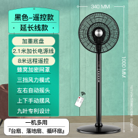 荣事达9叶电风扇落地大风量自动摇头风扇落地扇宿舍 黑色-遥控升级款[加重底盘+遥控+延长线]