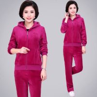 锋非凡 品牌冬季女士金丝绒套装女时尚2020新款秋冬加绒加厚运动套装休闲中老年人双面绒两件套妈妈装外套显瘦修身冬装