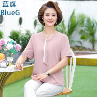 蓝旗 夏季新款妈妈装雪纺衫短袖洋气中年薄款时尚高贵优雅小衫