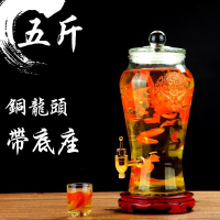 玻璃泡酒瓶带龙头5斤10斤15斤人参泡酒坛子玻璃瓶密封罐家用 5斤+铜龙头+底座