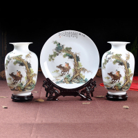 景德镇陶瓷花瓶三件套摆件客厅插花花器现代中式家居装饰台面摆设山 家和万事兴