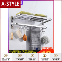 苏宁放心购不锈钢毛巾架免打孔卫生间置物架带挂钩毛巾杆浴室壁挂浴巾收纳架A-STYLE