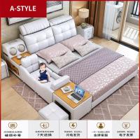 苏宁放心购智能榻榻米皮床真皮床1.8米主卧大双人床现代简约多功能婚床A-STYLE家具