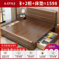 苏宁放心购胡桃木实木床1.8米现代中式双人床1.5m简约小户型主卧高箱储物床A-STYLE家具