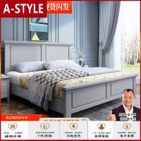 苏宁放心购美式实木床1.8m高级灰色双人床1.5m现代简约高箱北欧欧式轻奢家具A-STYLE