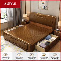 苏宁放心购中式实木床1.8米双人主卧橡木高箱储物床1.5米经济型单人1.2m1.35A-STYLE家具