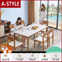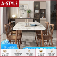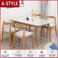 苏宁放心购北欧实木餐桌家用小户型现代简约白蜡木大理石防刮岩板餐桌椅组合A-STYLE
