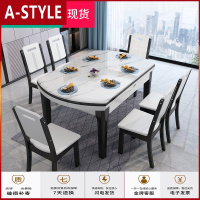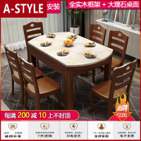苏宁放心购大理石餐桌椅组合伸缩折叠实木可变圆桌现代简约饭桌子家用小户型A-STYLE