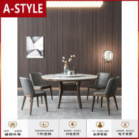 苏宁放心购家用大理石餐桌伸缩圆桌可折叠实木餐桌椅组合小户型餐桌现代简约A-STYLE