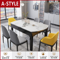 苏宁放心购轻奢餐桌伸缩现代简约家用北欧餐桌椅组合一桌六椅长方形大理石桌A-STYLE