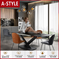 苏宁放心购北欧大理石餐桌网红岩板餐桌意式轻奢小户型长方形家用饭桌椅组合A-STYLE