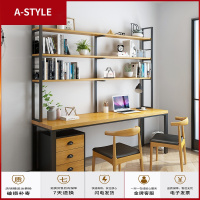 苏宁放心购loft双人书桌书架组合一体电脑桌省空间家用实木学生写字桌免钉墙A-STYLE家具