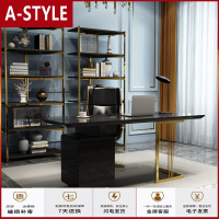 苏宁放心购轻奢书桌后现代简约办公桌家用不锈钢烤漆写字台钢化玻璃 电脑桌A-STYLE家具