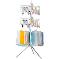 宝优妮 婴儿晾衣架落地折叠晒衣架阳台不锈钢多层尿布架毛巾架宝宝凉衣架户外旋转衣架2层袜子夹1层毛巾挂