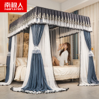 南极人(NanJiren)家纺 新款四柱导轨落地双层遮光帘蚊帐公主风u型轨道导轨蚊帐1.8m床上1.5m家用蚊账