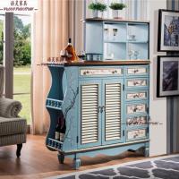 苏宁放心购地中海蓝色间厅柜上下组合柜美式彩绘双面鞋柜玄关柜客厅隔断装饰A-STYLE家具