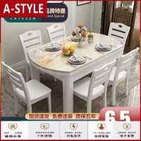 苏宁放心购大理石餐桌伸缩折叠实木圆桌吃饭桌子钢化玻璃餐桌椅组合A-STYLE家具