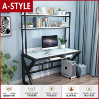 苏宁放心购电脑台式小型办公学习写字桌子简约现代家用卧室书架钢化玻璃A-STYLE家具