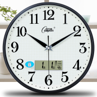 康巴丝(Compas)电子简约挂钟客厅卧室办公钟表 日历时钟大号石英钟温度 20英寸以上 升级款--液显黑色(圆形)