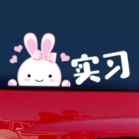 新款新手上路车贴女新手贴纸女司机车身贴画反光实习标志车尾可爱贴纸 卡其色 抖音