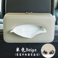车载纸巾盒挂式挂遮阳板挂天窗车用纸巾盒汽车内饰皮革车载纸抽盒 绑带款-米色(需要车标请留言) 抖音