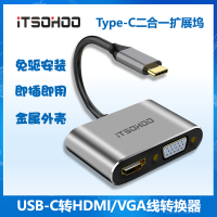 iTSOHOO Type-C扩展坞 苹果华为笔记本电脑USB-C转HDMI/VGA转换器投屏USB HUB分线器灰色