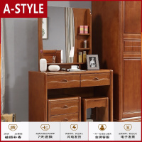 苏宁放心购实木橡木梳妆台小户型卧室化妆桌现代中式带储物柜化妆台凳子组合原木色客厅卧室欧式田园A-STYLE家具
