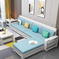 艺可恩实木沙发组合现代简约白色高箱储物冬夏两用小户型客厅布艺沙发