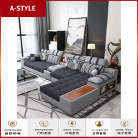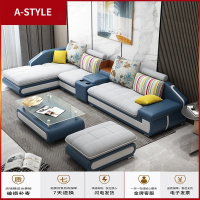 苏宁放心购简约现代布艺沙发 大小户型客厅整装家具可拆洗U型布沙发套装组合A-STYLE家具