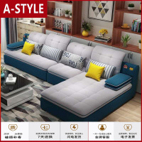 苏宁放心购小户型布艺沙发组合现代简约客厅转角三人位沙发网红款出租房用A-STYLE家具