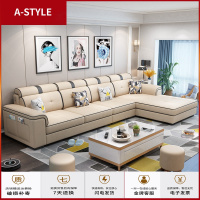 苏宁放心购现代简约布艺沙发组合大小户型欧式客厅转角乳胶沙发组合套装家具A-STYLE家具