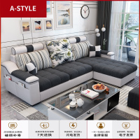 苏宁放心购简约布艺沙发小户型三人客厅整装组合转角北欧科技布现代套装家具A-STYLE家具