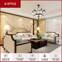 苏宁放心购新中式沙发 现代简约客厅样板房别墅禅意家具 全实木布艺沙发组合A-STYLE家具