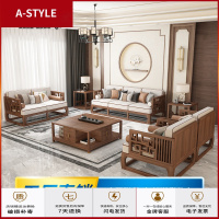苏宁放心购新中式实木沙发组合黑胡桃木现代简约布艺沙发办公室别墅客厅家具A-STYLE家具