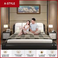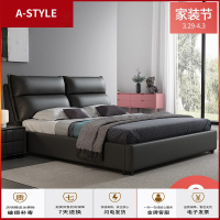 苏宁放心购真皮床头层牛皮1.8米双人婚床现代简约主卧室欧式榻榻米皮床A-STYLE家具