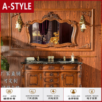 苏宁放心购实木欧式浴室柜落地仿古卫浴柜红橡木洗漱台盆大理石洗手盆柜组合A-STYLE