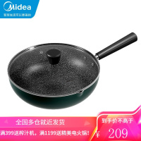 美的(Midea)森墨绿麦饭石色涂层螺旋把手不粘炒锅家用炒锅电磁炉煤气灶CJ30Wok311 30CM带透明盖
