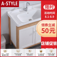 苏宁放心购太空铝浴室洗漱柜组合落地陶瓷洗脸盆洗手台镜柜卫生间阳台洗衣盆A-STYLE