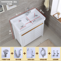 陶瓷洗衣槽太空铝浴室柜洗衣盆带搓板水池阳台落地式一体台盆 71搓衣盆+白色柜+龙头全套