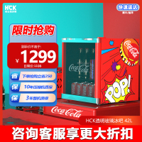 HCK哈士奇 SC-46BUA 冰吧可口可乐联名款家用客厅玻璃门小型冰柜冰箱