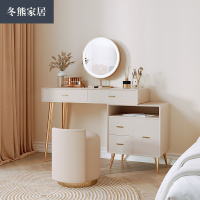 冬熊北欧小型迷你梳妆台小户型简约卧室化妆桌收纳柜一体奶白色SZT13