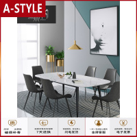 苏宁放心购北欧大理石餐桌长方形网红岩板餐桌椅组合现代简约小户型饭桌家用A-STYLE家具