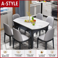 苏宁放心购意式轻奢岩板餐桌现代简约防刮伸缩长方形北欧大理石餐圆桌椅组合A-STYLE