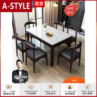 苏宁放心购大理石餐桌椅组合小户型现代简约家用客厅吃饭桌子实木长方形台子A-STYLE