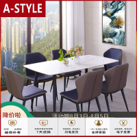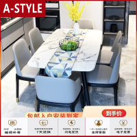 苏宁放心购北欧大理石餐桌现代简约桌子岩板小户型长桌轻奢长方形餐桌椅组合A-STYLE