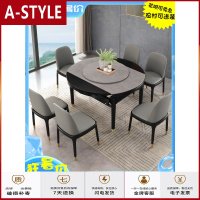 苏宁放心购轻奢岩板餐桌椅组合家用小户型大理石实木圆形餐桌可伸缩折叠饭桌A-STYLE