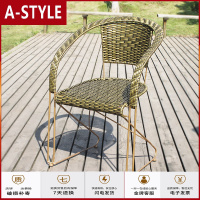 苏宁放心购藤椅靠背椅电脑椅办公休闲椅麻将铁艺仿藤编织阳台单人椅子钢筋椅A-STYLE家具