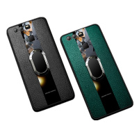 [送钢化膜]高铭宣华为p9手机壳p9plus防摔商务男款保时捷皮纹指环支架扣九保护套新个性 P9Pro[墨绿色]送钢化膜