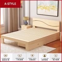 苏宁放心购北京实木床1.8米简约现代单双人1.5米松木床出租房经济型工厂直销A-STYLE家具